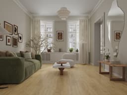 Напольное покрытие «Миндаль» имеет светло-коричневый оттенок с видимыми узорами древесных волокон и текстурными деталями, которые создают эффект натурального дерева. Благодаря своему природному происхождению, светлый пастельный оттенок с характерным желтоватым подтоном гармонично сочетается с различными материалами, будь то древесина или текстиль. Такой пол создает ощущение безопасности и комфорта, что особенно важно при оформлении интерьера в жилых помещениях.